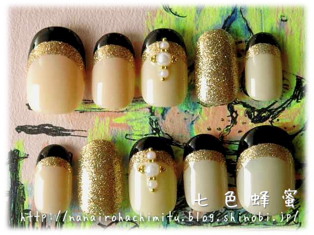 薬指はアクセントになるようにゴールドのラメのベタ塗りにしました。