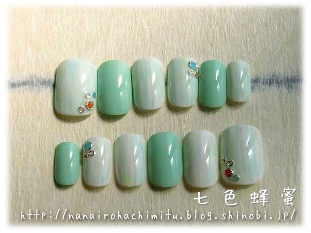 写真ではほとんど分かりませんがうっすらと差し色に黄緑を入れてます。