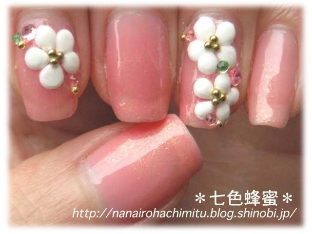 隙間にピンクと黄緑のラインストーンとゴールドブリオンを並べて完成。