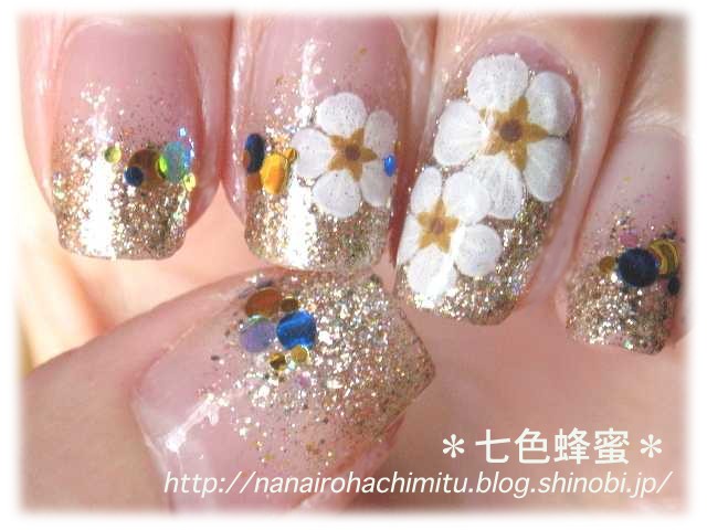 薬指は押し花シールの大小を全面に貼って、