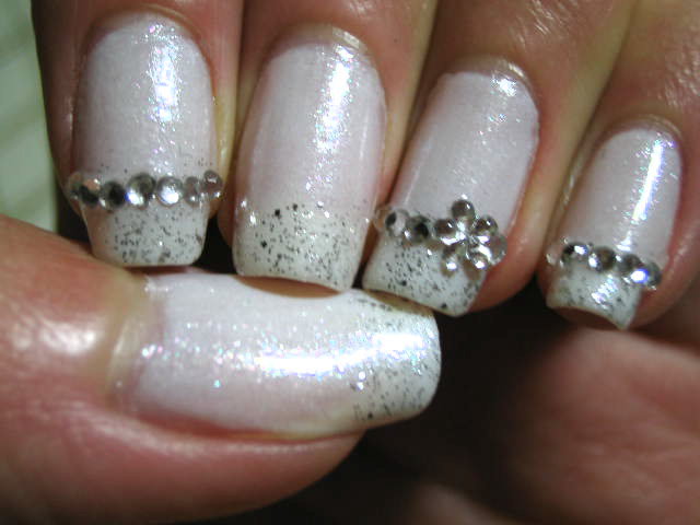 フレンチの境目にクリアのラインストーンを載せて、