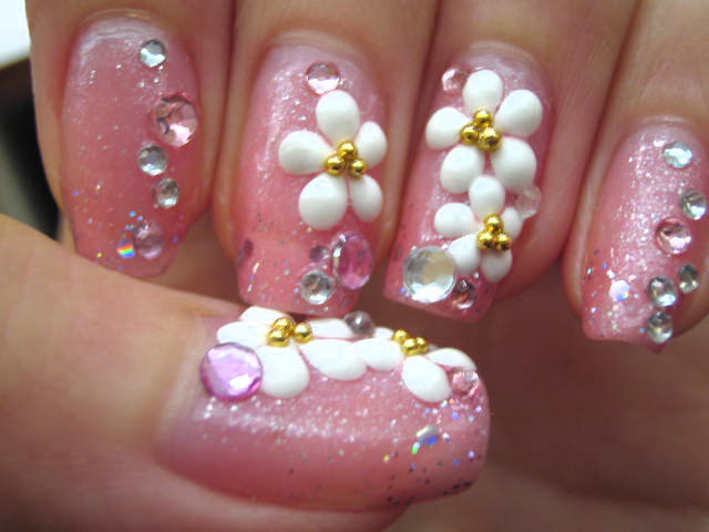 クリアとピンクのラインストーンを縦のラインで置いて出来上がり。
