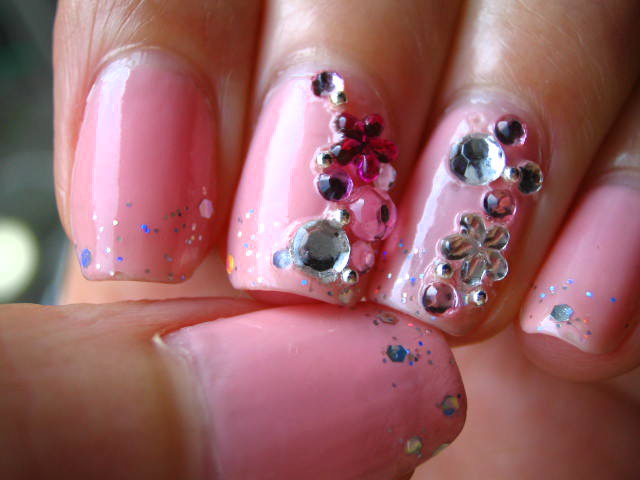 この時は爪の半分弱くらいをストーンで埋め尽くす感じで。