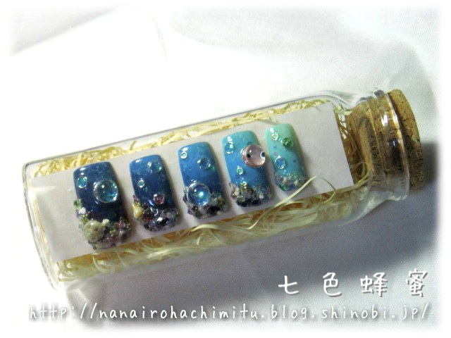 「瓶に詰まってるポニョ」のイメージでガラス瓶に入れてお渡ししました。