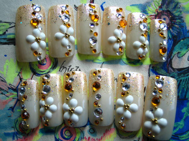 ゴールド系のラメとオレンジのラインストーンが入ると、