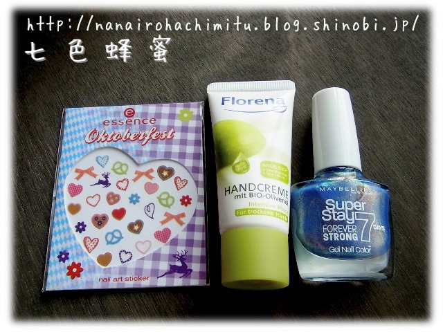 MAYBELLINEのドイツ限定ポリッシュだそうで綺麗な青ベースに微細ラメがたっぷり。