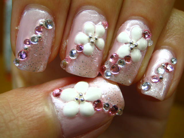 ポイントに3Dの白い花。