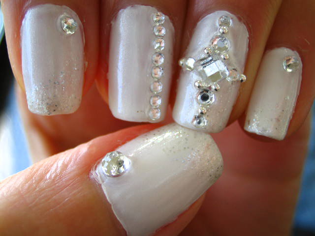 ポイントになる指にはラインストーンを並べてデザインをして、