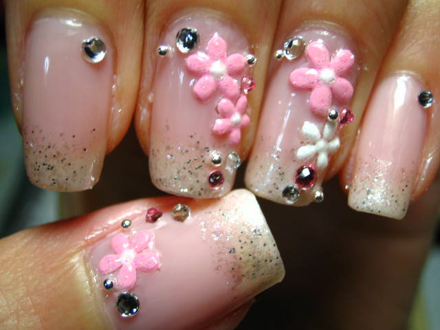 隙間にピンクとクリアのラインストーンとシルバーブリオン。