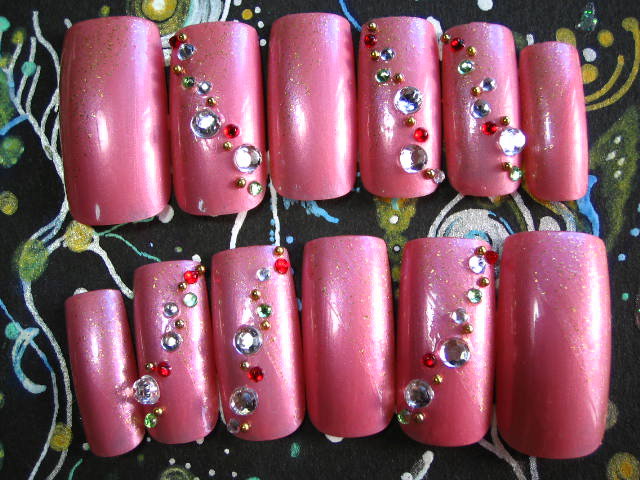 ラインストーンは赤と黄緑を使ってます。