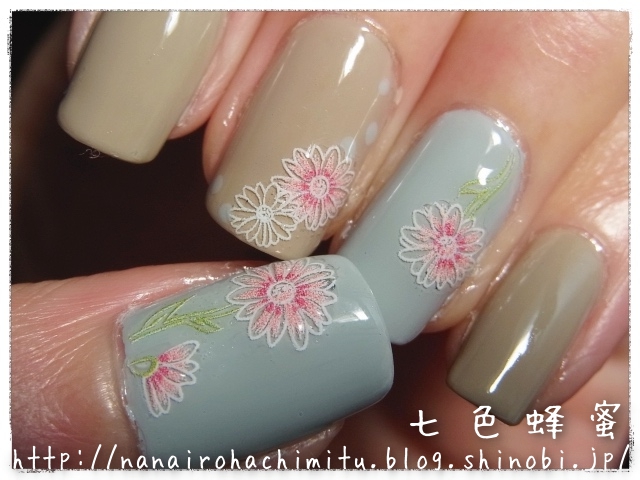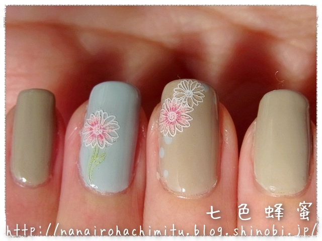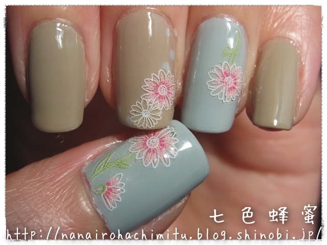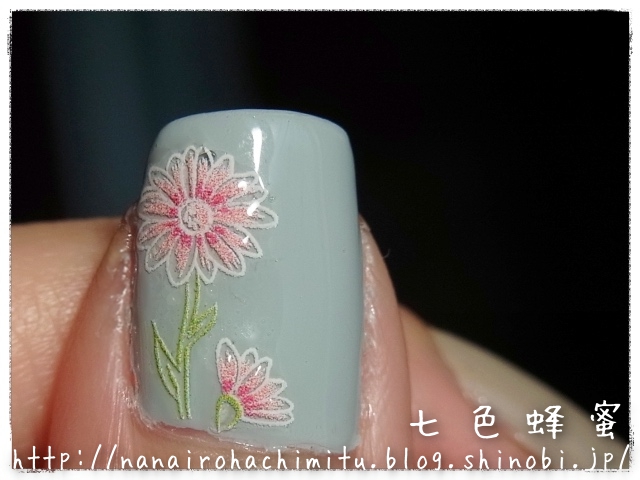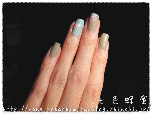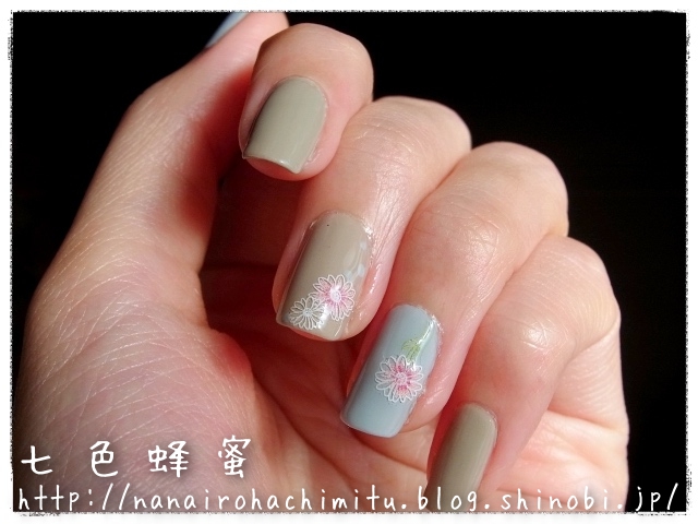 マーガレットが明るい色なのでポリッシュのくすみカラーを馴染まず、