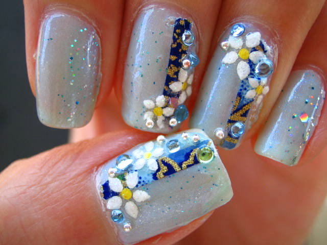 それ以外の爪には青ラメを外側1/3ほどに塗って完成。