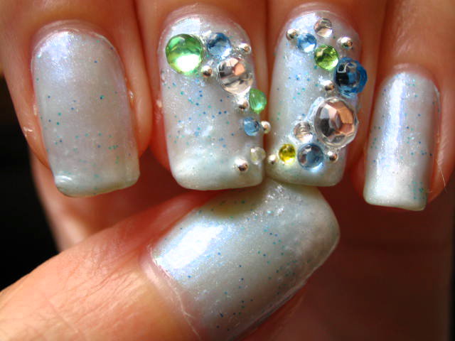 クリア、水色、黄緑、黄色のラインストーンと、