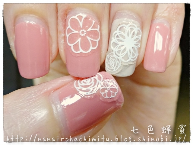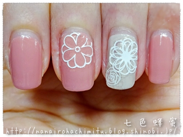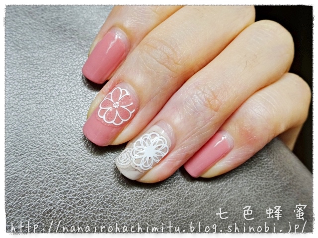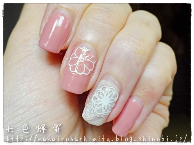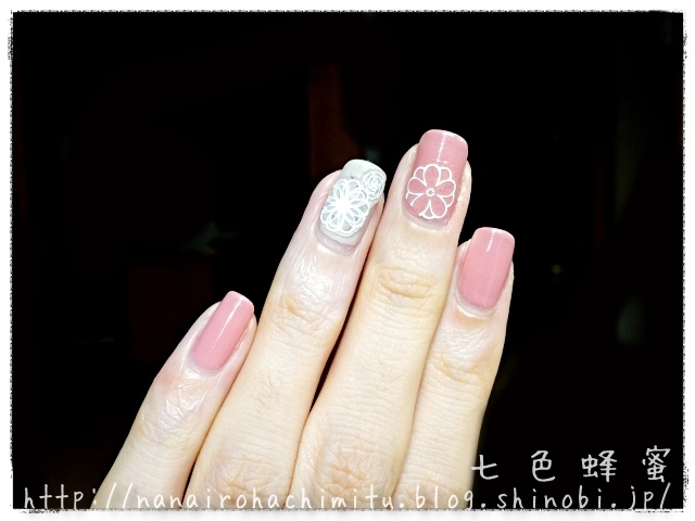 薬指がピンクの「APRIL」で親指がベージュの「CALA」です。