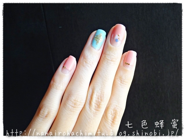 もちろんベースコートが乾いたのを確認してから貼ります。