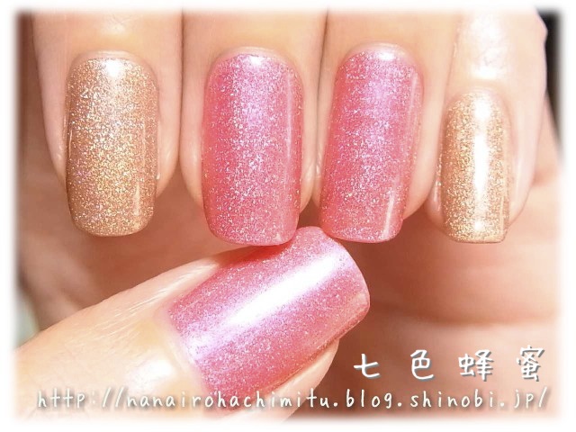 偏光の微細ラメがたっぷり入ったピンクとベージュを、