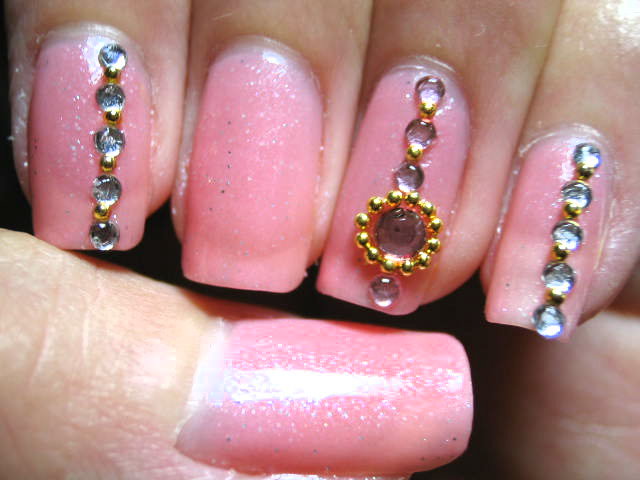 ピンクとクリアのラインストーンとゴールドブリオン。