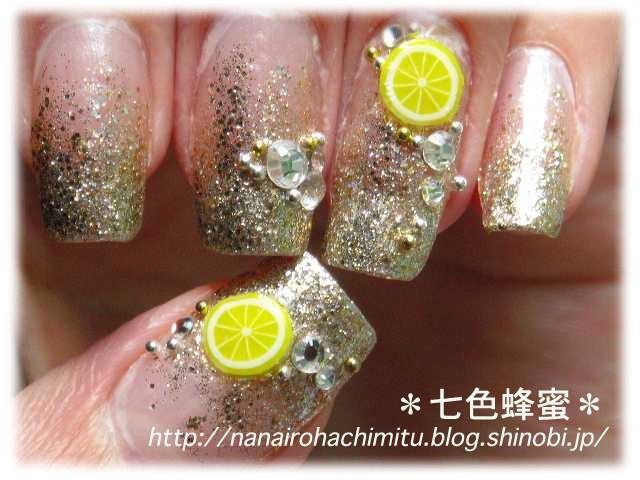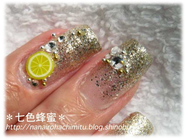 ラメの粒を置くようにしてグラデ風にしているのですが、
