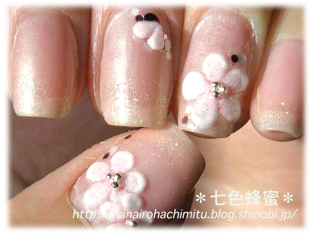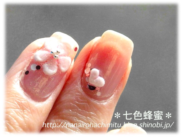 ハートのシールは真っ白だったのでピンクラメのポリッシュを塗って、