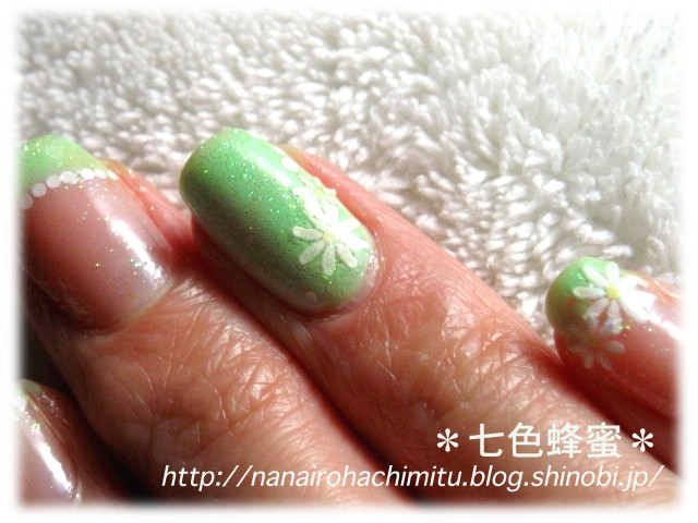黄緑色でフリーエッジを塗ってフレンチにして、