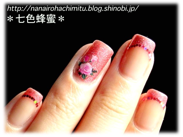 フレンチラインにピンクの六角ホロを並べて完成。
