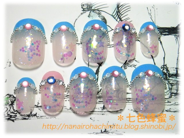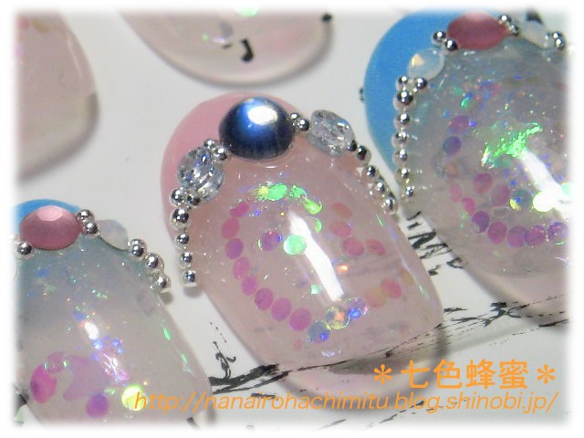 人差し指と小指には星ホロと丸ホロを散らしてあります。