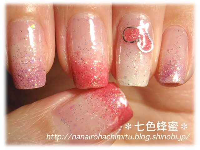 ハートの中を中指と親指に使ったピンクラメで塗りつぶして完成。