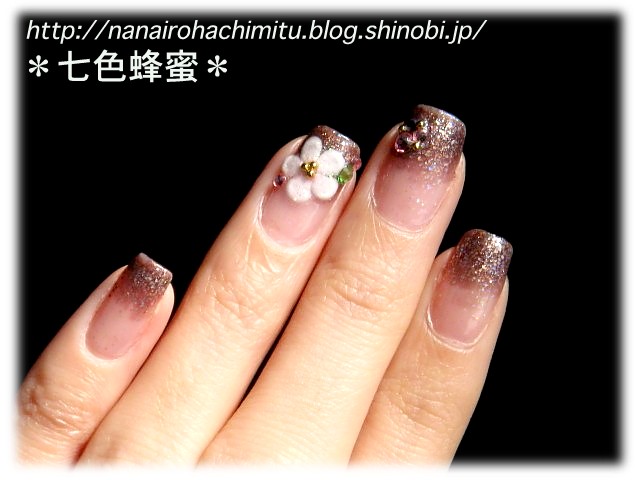 その上からブラウンラメで爪先から半分くらいまでシロップ。