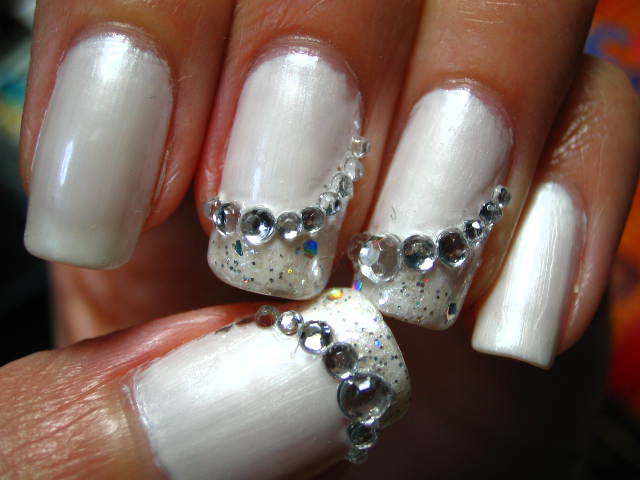 パールホワイトに銀ラメとクリアストーンで、色味的にはシンプルに。