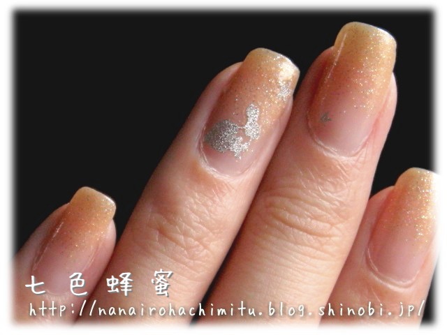 全体に淡い微細オレンジラメを1度塗り、