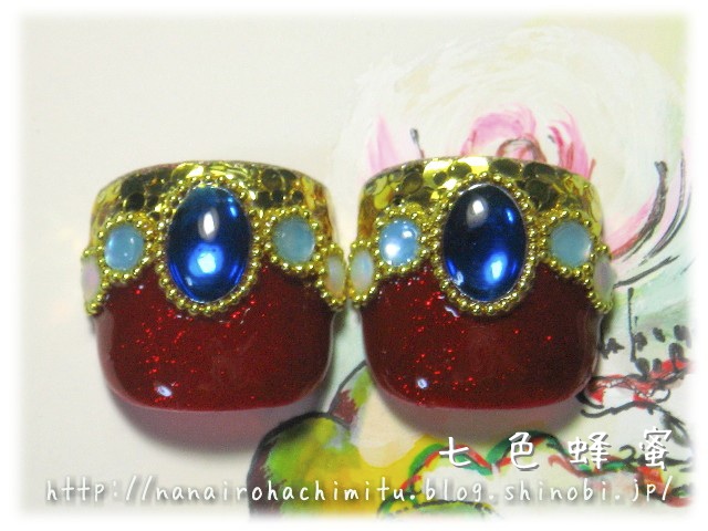 ベースの赤もラメ入りのものにしたのでかなり華やかなデザインになりました。