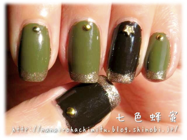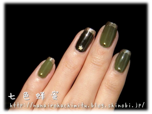 薬指と親指にダークオリーブを2度塗り。