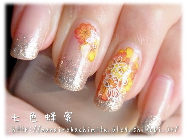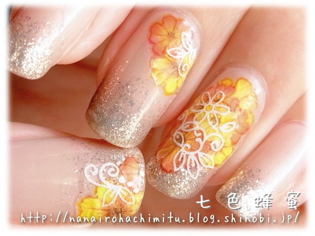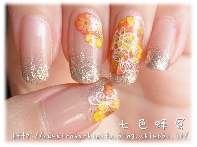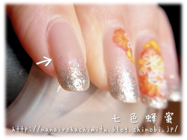 時間が足りずラメグラデ部分が乾かないままシールを貼ってしまったので、