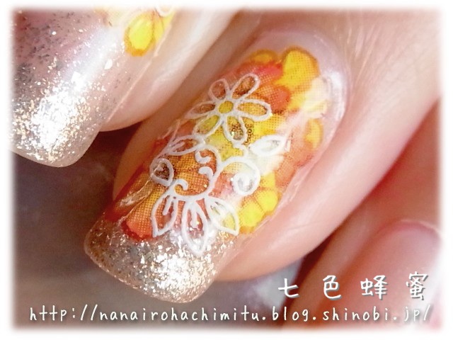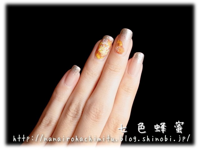 前述の理由でシルバーラメとシールで盛って全体の色味を明るい方向に整えました。