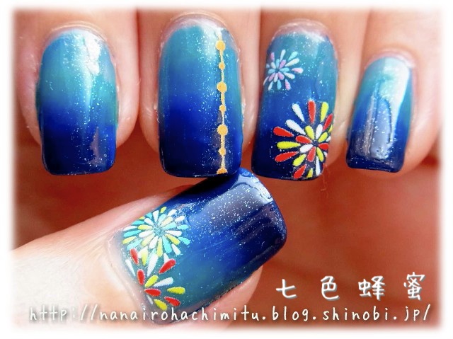 企画展用に青いポリッシュばかり使っていたら自分の爪にも塗りたくなりました。