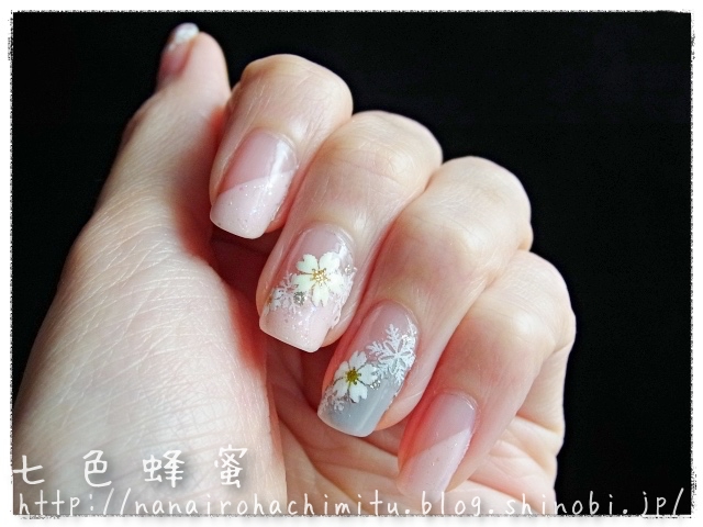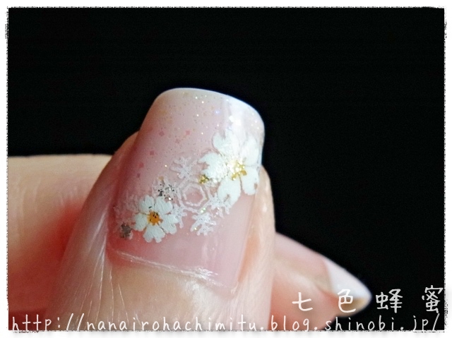 その実、雪の結晶ネイルをやる前に桜の季節になってしまったので、