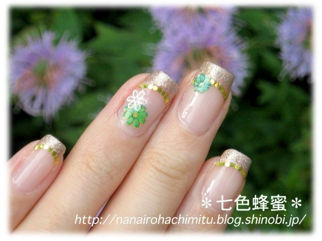 フレンチは相変わらず苦手なのでラインを誤魔化すためにゴールドホロを並べていますが、