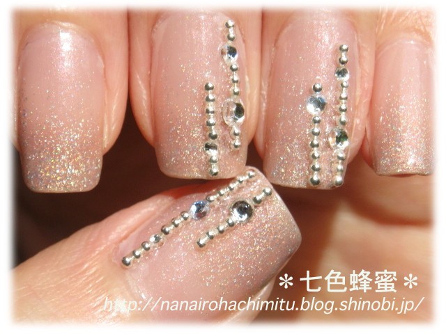 親指にはクリスタルとライトサファイアのラインストーンを縦に並べて完成。