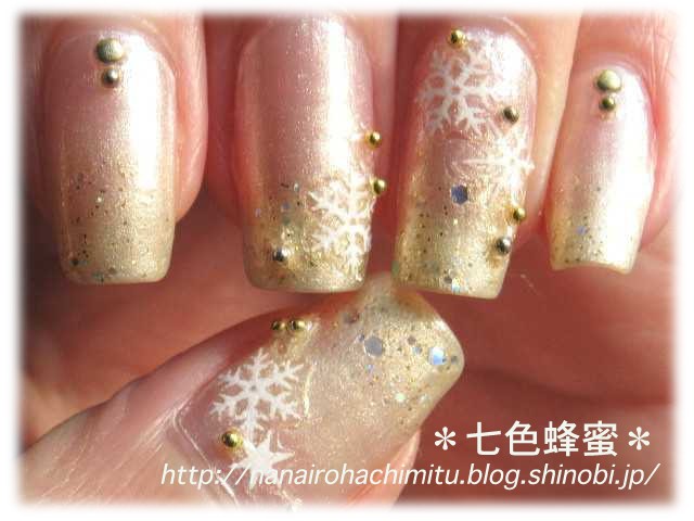雪の結晶のネイルシールを貼って、
