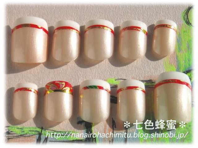 「シャンパンゴールドに白フレンチ」というだけの指定だったのが、
