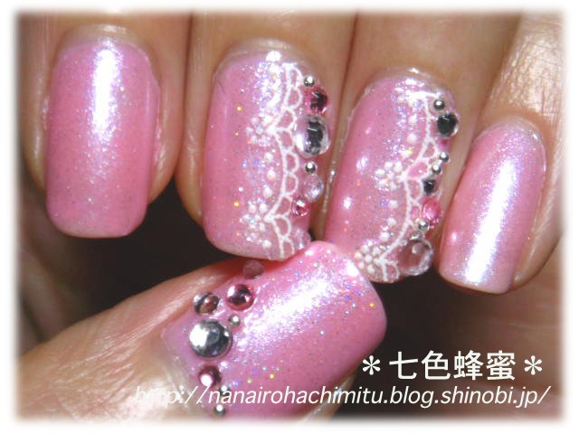 最近、クリアと水色と黄緑のラインストーンの組み合わせが好きです。