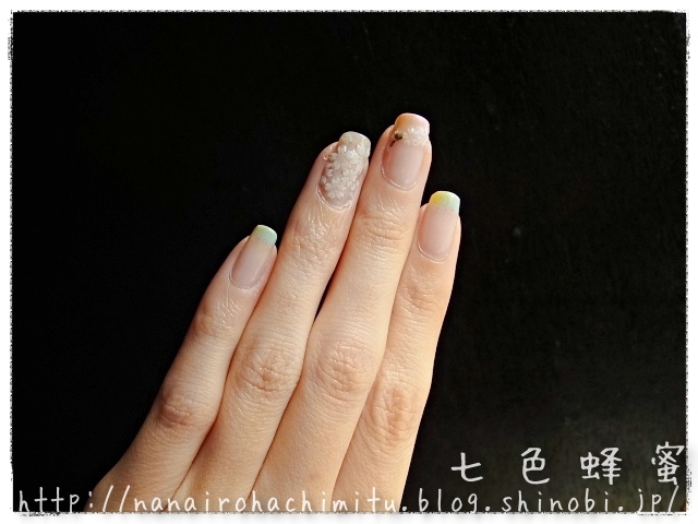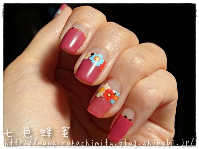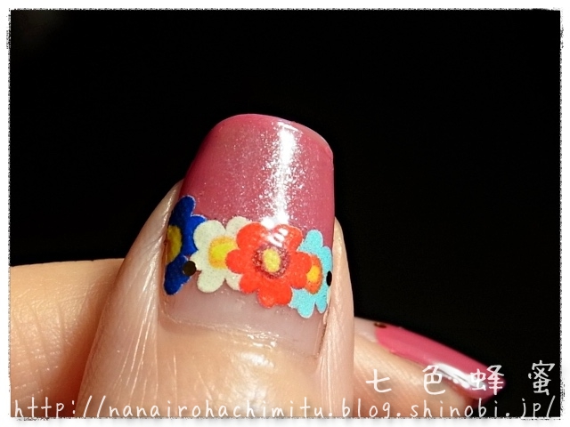 濃いネイルカラーの上に使用しても沈まずはっきり発色します。
