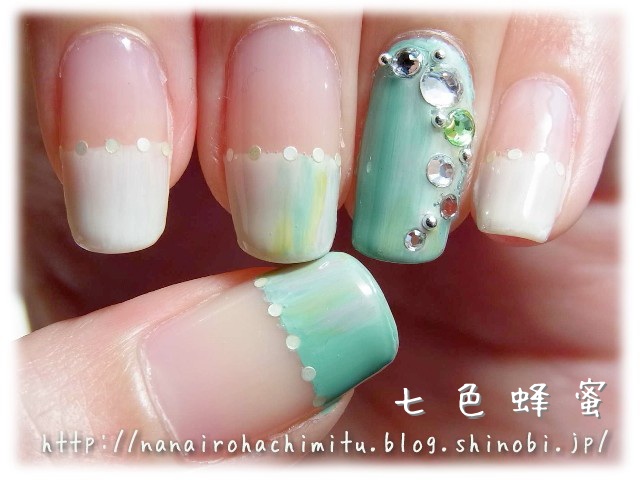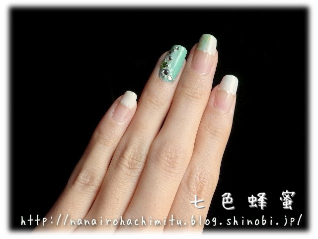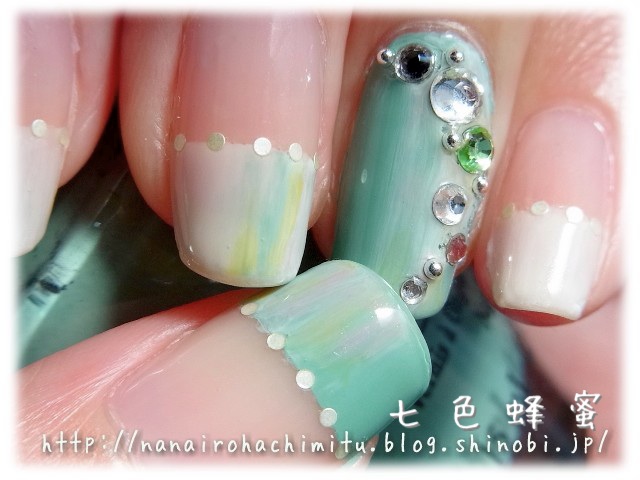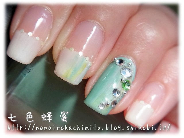 上に塗り重ねたポリッシュとちょっと馴染みます。