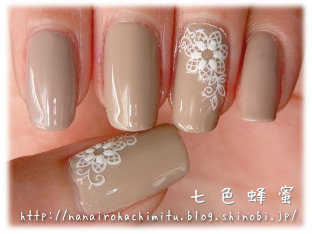 フラワーレースのシールとリーフレースのシールを繋がるようにして貼って完成。