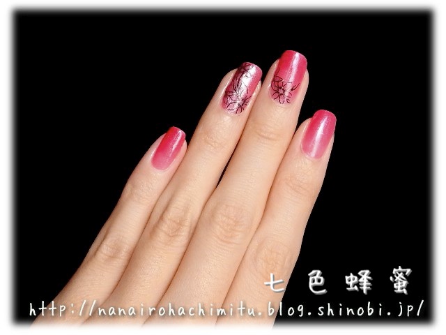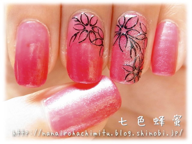 微細ラメ入りの濃いピンクで全体的にシロップ。