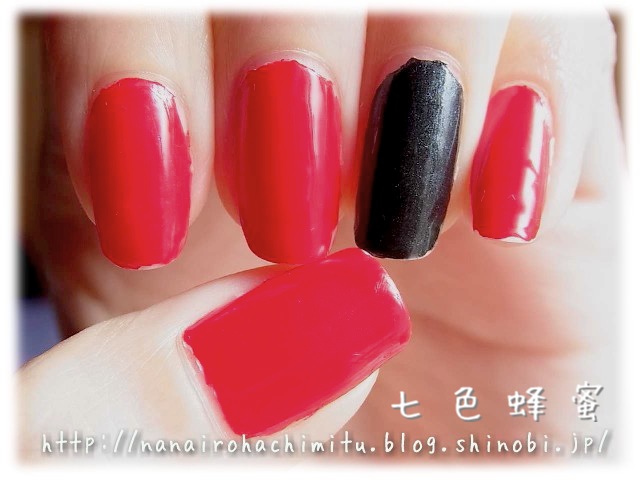 薬指だけパールブラックを全面に2度塗り。