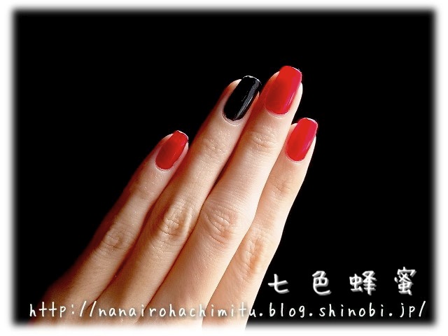 薬指は微細パールの入ったブラックです。
