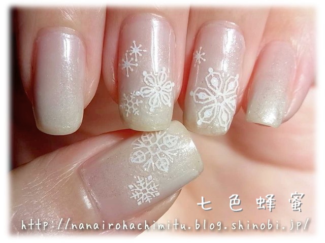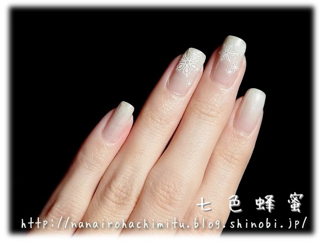 やっぱり1回はやっておかないと! な、白グラデ+雪の結晶ネイル。
