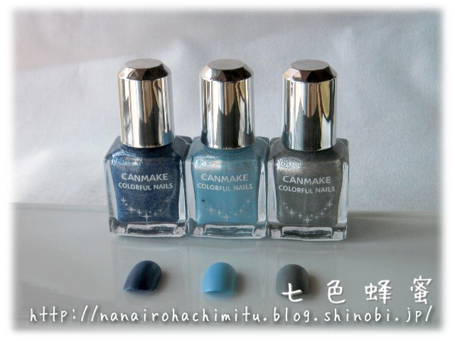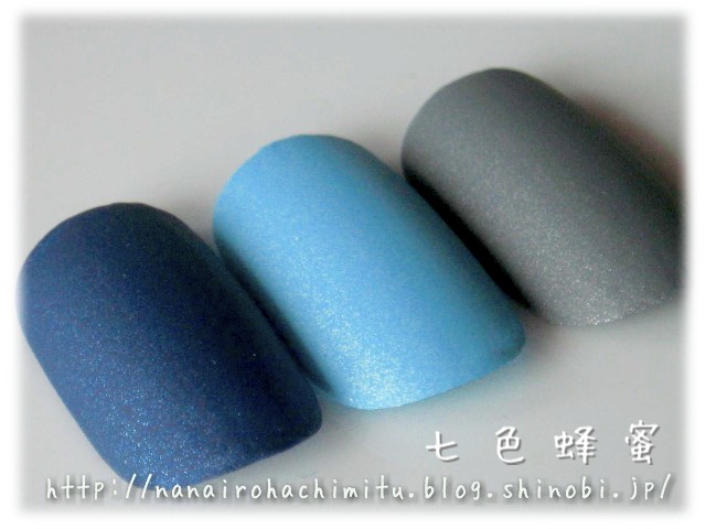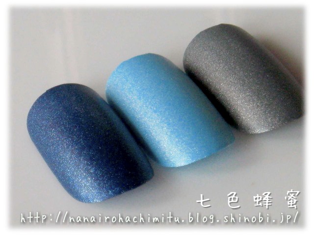 それでもベースカラーが濃い「ブルーデニム」は微細ラメがまだ存在感がありますが、