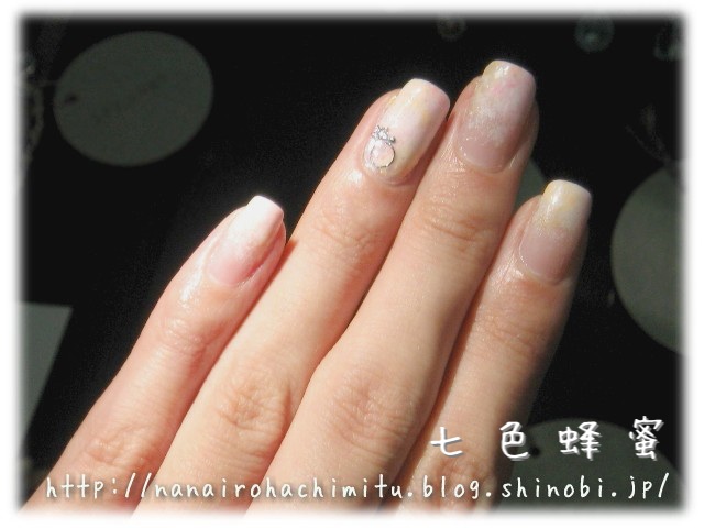 ポリッシュのベースはクリーム系ではなく透け感があるカラーので、